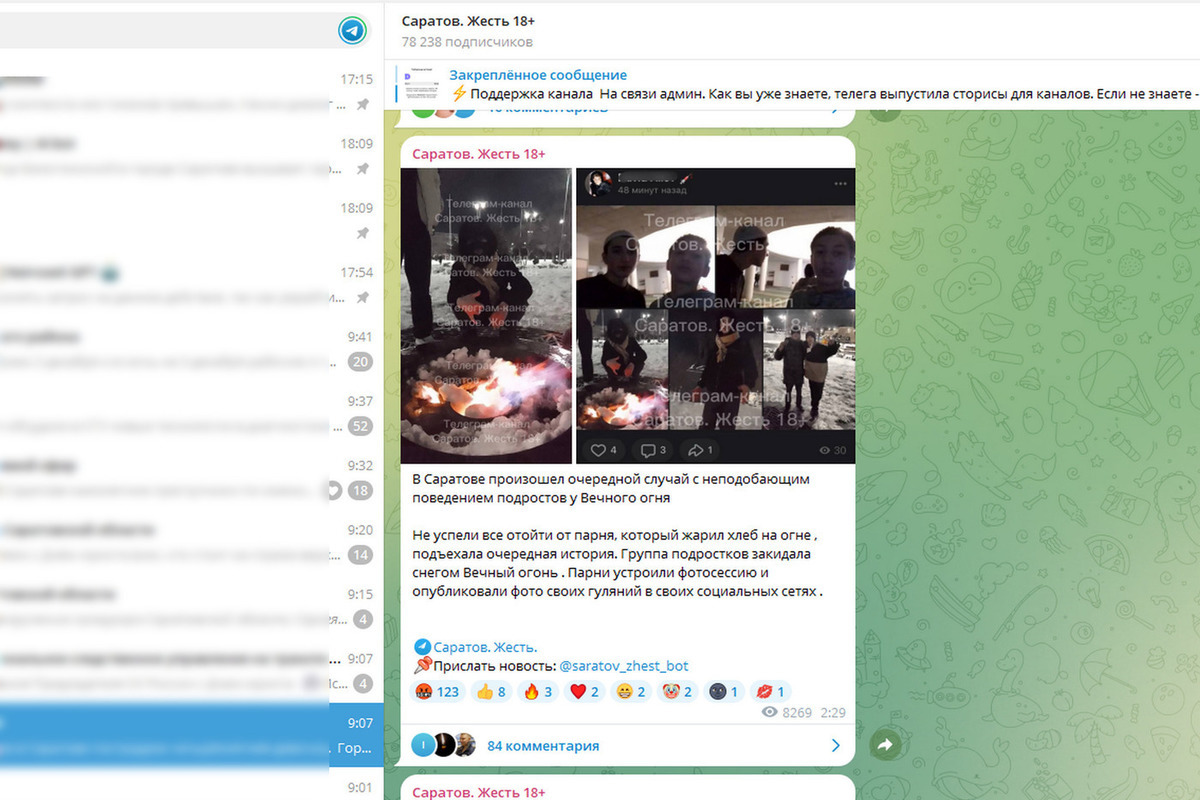 На данный момент пресс-служба Саратовского областного главка сообщает, что полицейские уже проводят проверку и выясняют обстоятельства произошедшего у памятника и Вечного огня.