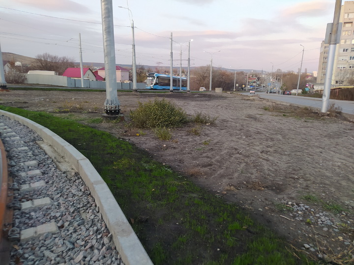Пятачок на остановке «Тульская» (пос. Комсомольский) полтора года служил площадкой для складирования стройматериалов: сначала там лежали шпалы и рельсы, затем опоры, а с весны 2025 года – межрельсовые плиты. Сейчас остановка общественного транспорта представляет собой печальное зрелище: гора щебенки, грязь, разбитые техникой бордюры, отсутствие тротуаров. Чтобы перейти от магазина «Магнит» в сторону улицы Прудной жителям приходится идти по грязи. Хотя до реконструкции трамвайной линии № 8 пятачок был аккуратно заасфальтирован, несколько лет подряд на этом месте работала сезонная ярмарка.