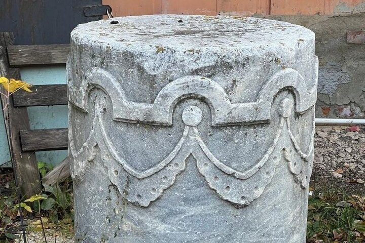 Месяц назад во дворе сельского частного дома была обнаружена тумба. Теперь памятник практически собран: не хватает только бюста императора и декоративного завершения тумбы.