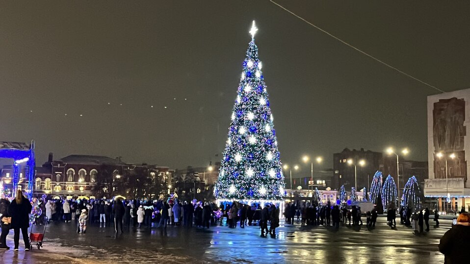 В Саратове снова засияла огнями главная новогодняя ель, установленная на Театральной площади. Напомним, 13 декабря ее разрушил ураганный ветер, пронесшийся по региону. От его последствий погибло несколько человек.