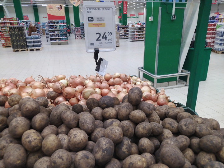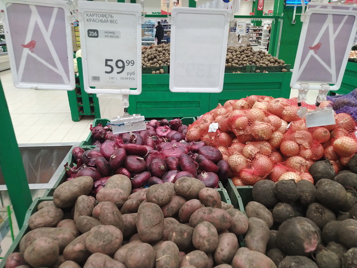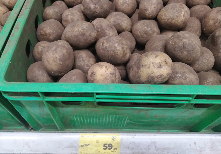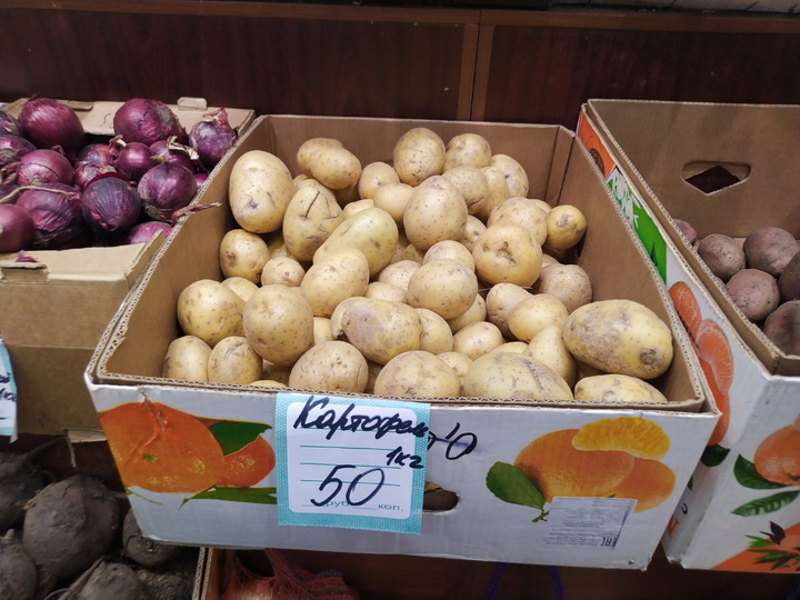 В сети магазинов «Магнит» картофель стоит 59,9 руб. за кг. Мытый отборный белый корнеплод – 89,9 руб. кг. В гипермаркете «Ашан» (ТЦ «Оранжевый») красный сорт продается по 59,9 руб. за один кг, картошка по «социальной цене» - 24,9 руб. за кило. На рынках средняя цена картофеля 50-57 рублей кг.